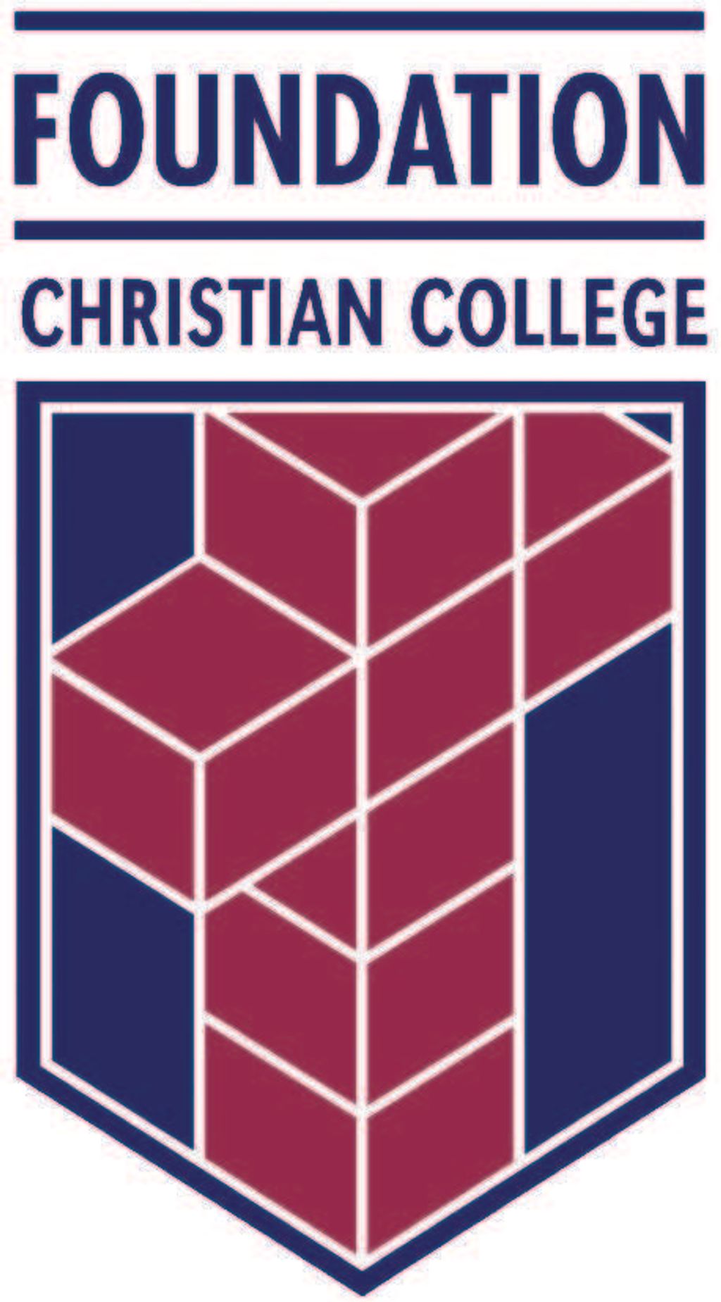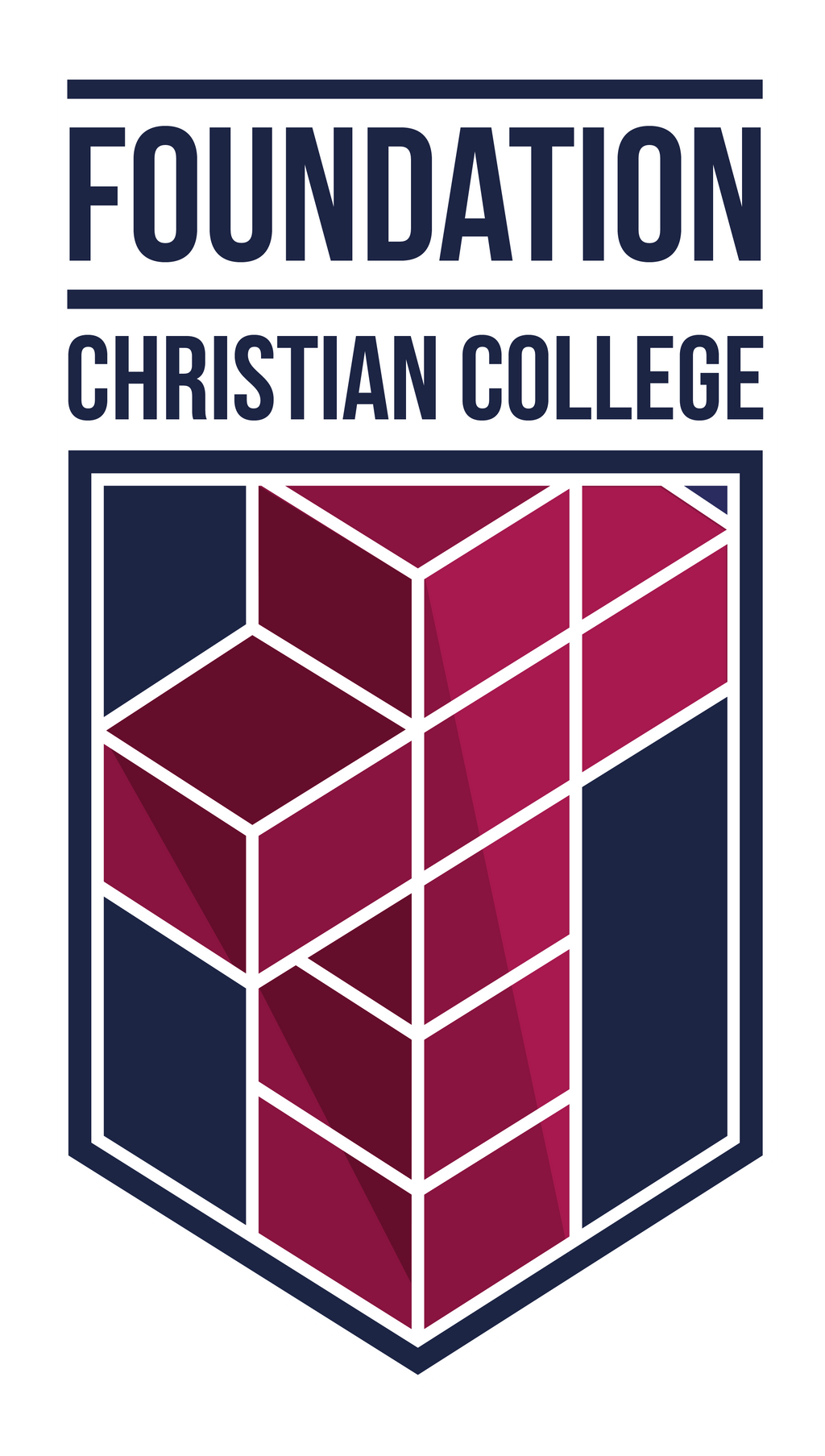 Our original logo (pictured in the gallery below) underwent several updates before technology requirements saw that it needed to be replaced in 2020. This first logo was representative of the building blocks of faith and life that students experience at Foundation Christian College. You can see it on the side of the Administration Building facing Lakes Road.